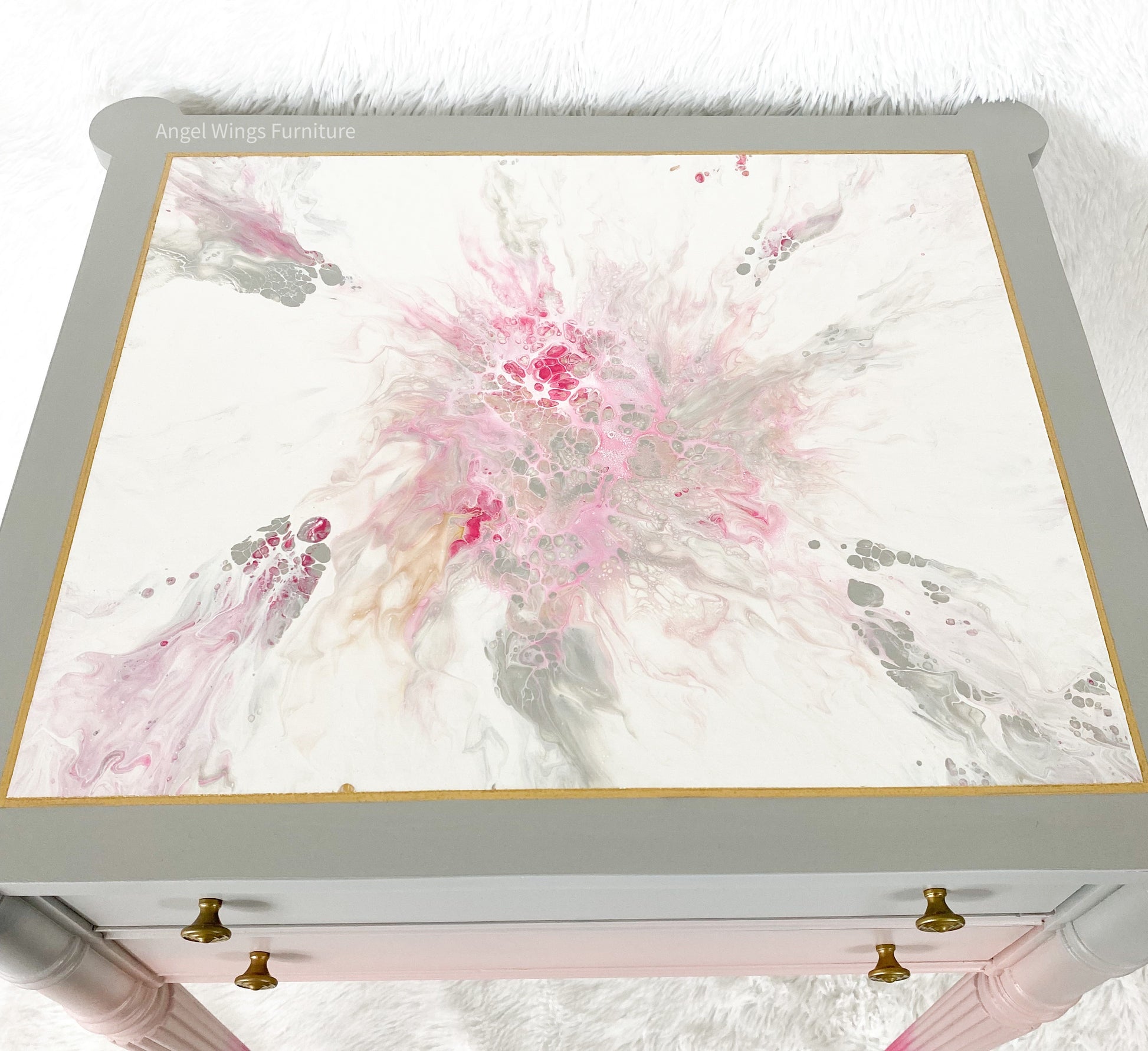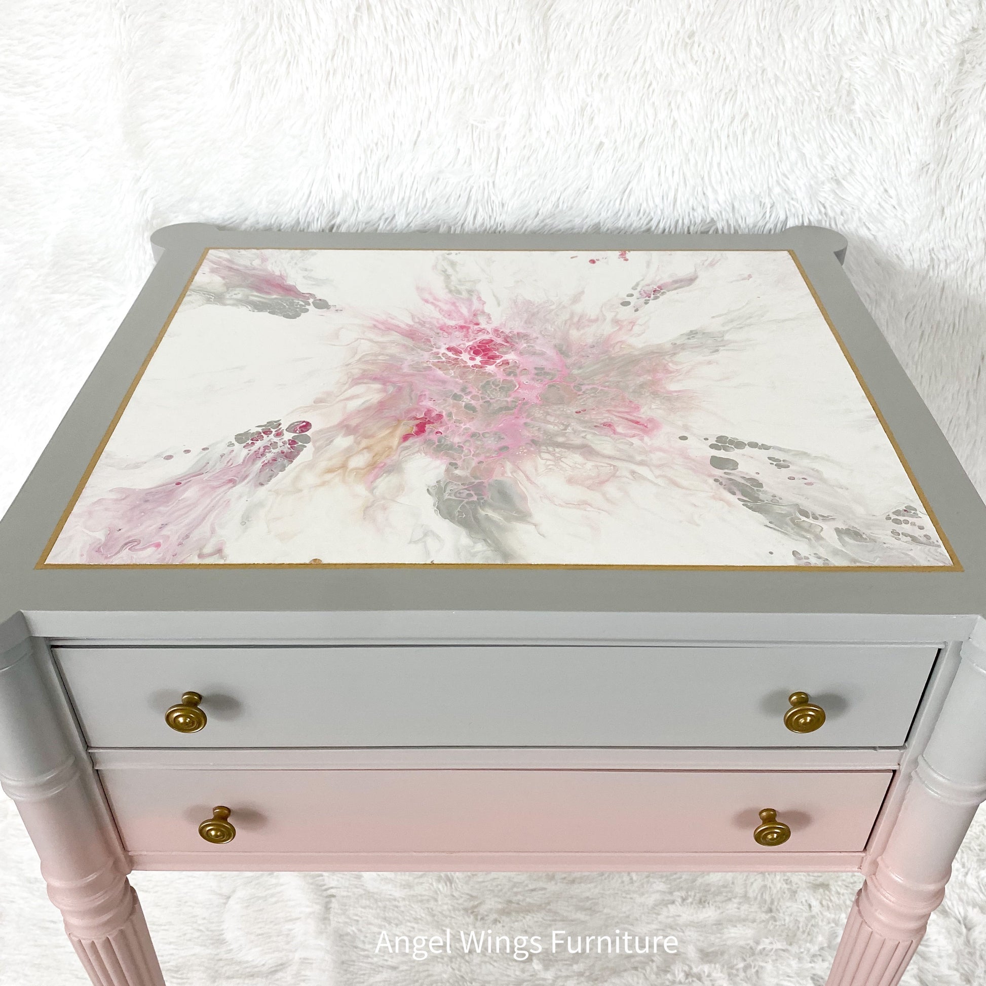 Federal Style Table. Boho Bedside Table Nightstand. Pink Gray Side Table. Girls Bedroom Furniture. Nursery Furniture. Eclectic End Table